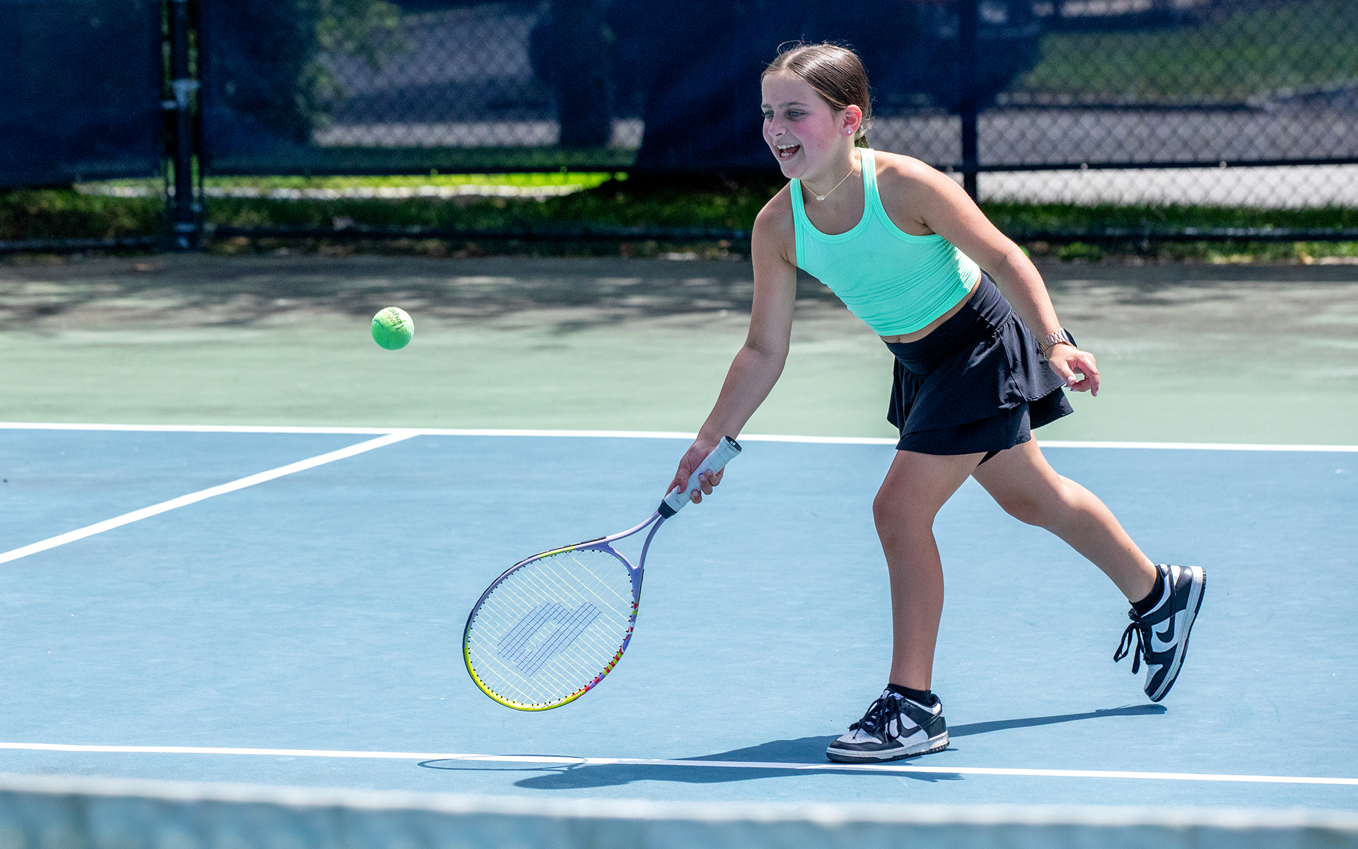 Our large, outdoor tennis facility is lit for nighttime play and offers eight tennis courts (six hard and two Har-Tru surfaces), as well as six pickleball courts for Members to use.